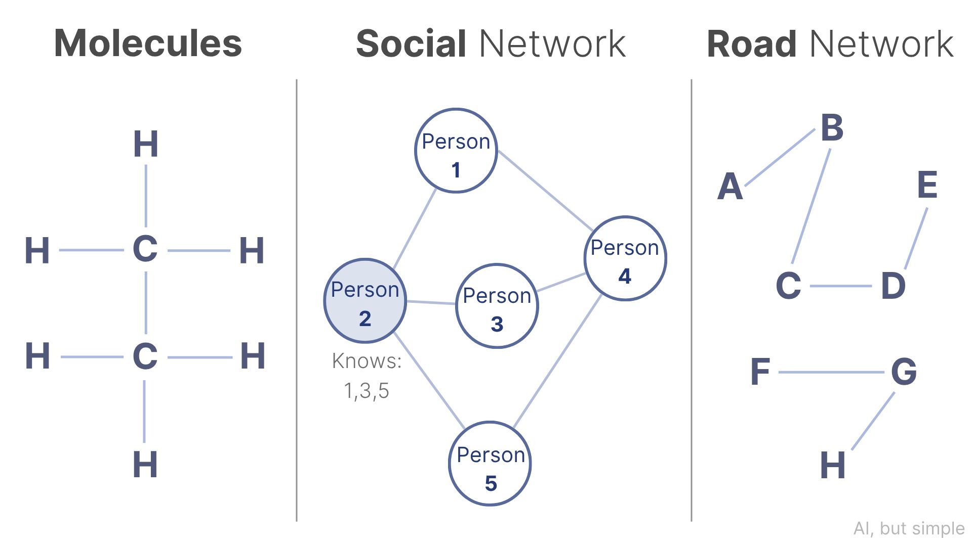 These are graphs: collections of nodes (entities) and edges (relationships between them).